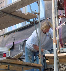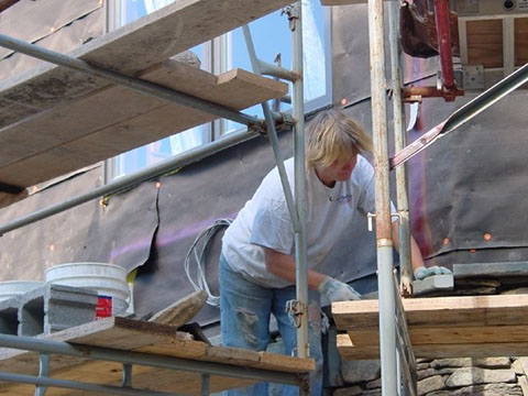 Suzy stays in shape for skiing by doing stonework and gardening from spring through fall.